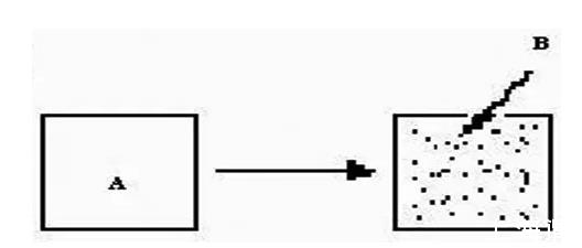 第三種方式,分散。分散是指液體A分散到另外一種與之互不相容的液體B中,形成A、B混合物的過程,過程如圖4所示。