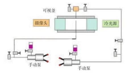 潤濕性及界面張力儀主要包括常溫常壓型、高溫型、超高溫型、便攜型,其中高溫高壓型潤濕性及界面張力儀能夠真實模擬油藏條件測量接觸角和界面張力。為了擴展高溫高壓潤濕性及界面張力儀可以測量二氧化碳與原油最小混相壓力功能,且可以使常溫凝固的稠油等樣品,實現順利進樣測量和測量,需要對現有設備進行改造。通過增加高溫高壓氣體進樣系統,改進原有油相、水相進樣系統,使其功能得到擴展。