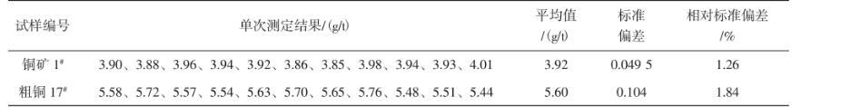 選取具有代表性的兩個試樣,獨立測定每個試樣各11次,精密度見表2和表3。