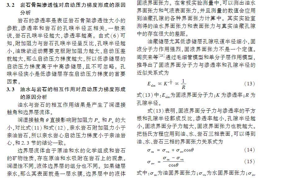 油藏儲層油水界面張力是形成啟動壓力梯度的微觀成因