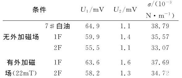 表2磁性液體及7#白油表面張力