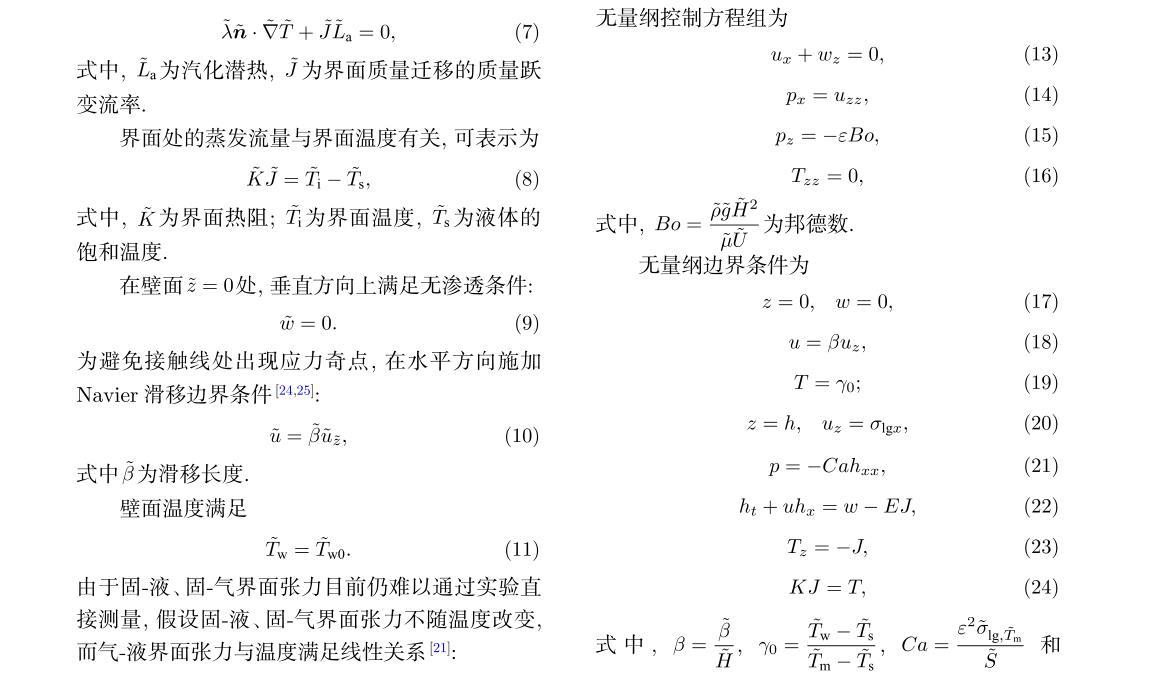 無量綱邊界條件為無量綱形式的界面張力與溫度關系為