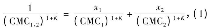 同系列表面活性劑混合后的臨界膠團濃度(CMC1,2)可由下式計算: