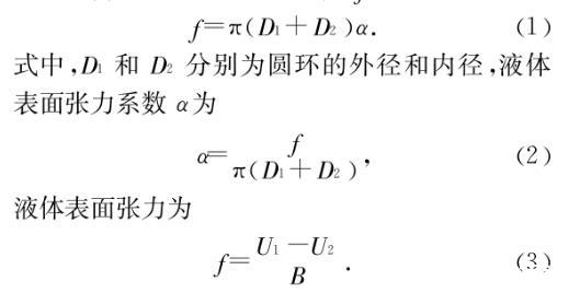 將金屬環固定在硅壓阻力敏傳感器上,使該環浸沒于液體中,并漸漸拉起圓環,當它從液面拉脫瞬間傳感器受到的拉力差值f為