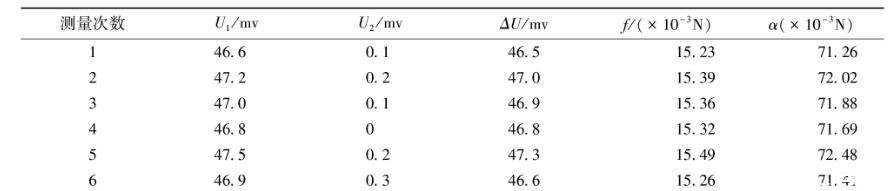 用原有的金屬吊環(huán)測量純水在25℃時(shí)的液體表面張力系數(shù)的數(shù)據(jù)見表2。
