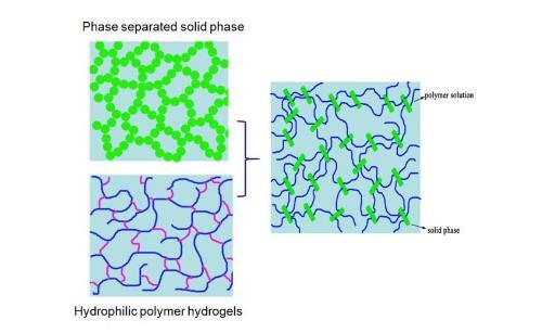 傳統(tǒng)的氣凝膠主要以氧化硅、氧化鋁等為主,其特征在于凝膠網(wǎng)絡(luò)與溶劑形成明顯的相分離區(qū)域,凝膠網(wǎng)絡(luò)為連續(xù)的固相。近年來廣泛報道與研究的石墨烯氣凝膠、碳納米管氣凝膠,其凝膠單元皆為不溶解的分散納米單元(如圖4所示)。而以親水性高分子交聯(lián)網(wǎng)絡(luò)為代表的化學水凝膠,則極少被制備成氣凝膠,原因在于并未形成固相的連續(xù)化凝膠網(wǎng)絡(luò),高分子處于溶脹態(tài),化學交聯(lián)防止其完全溶解。對于此類水凝膠,不論采用何種干燥方法,都難以維持“原網(wǎng)絡(luò)”結(jié)構(gòu),親水性高分子基氣凝膠的報道因此極為稀少(圖4)。理論上講,任何一種濕凝膠都能制備相應(yīng)的氣凝膠,但從技術(shù)角度看,還有待長期實驗結(jié)果的驗證。