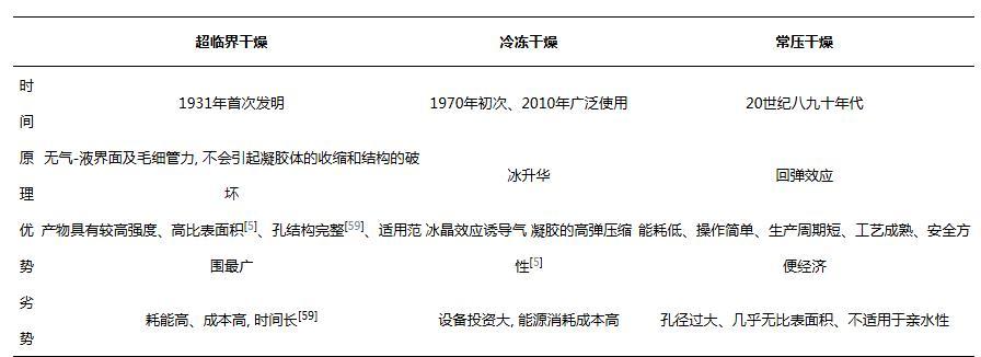 綜上所述,不同的干燥方法側(cè)重點不同,各具優(yōu)缺點。表1概括了三種常用干燥方法的發(fā)明時間、原理及優(yōu)劣勢。