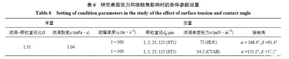 表6研究表面張力和接觸角影響時的條件參數設置