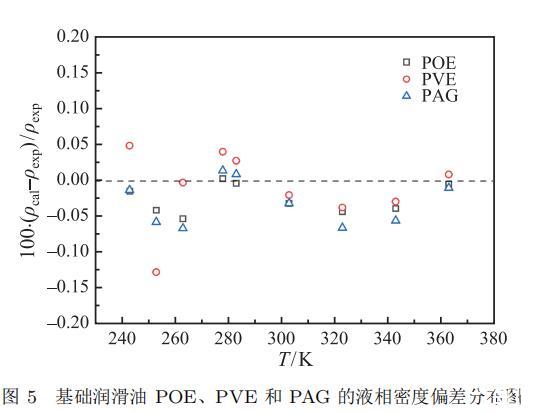 圖 5 基礎(chǔ)潤(rùn)滑油 POE、PVE 和 PAG 的液相密度偏差分布圖