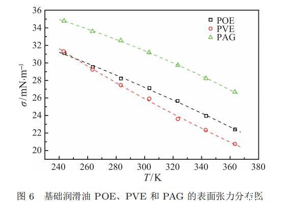 圖 6 基礎(chǔ)潤(rùn)滑油 POE、PVE 和 PAG 的表面張力分布圖