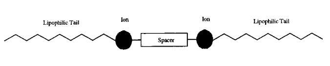 兩個(gè)末端烴尾可以是短的,也可以是長(zhǎng)的;兩個(gè)極性頭基可以是陽(yáng)離子、陰離子或非離子;間隔物可以是短的或長(zhǎng)的、柔性的或剛性的、極性的或非極性的(參見(jiàn)參考文獻(xiàn)1中的方案1)。8-12雙子座不需要圍繞間隔物的中心對(duì)稱布置。13,14顯然,豐富的化合物存在于合成可能性的范圍內(nèi)。