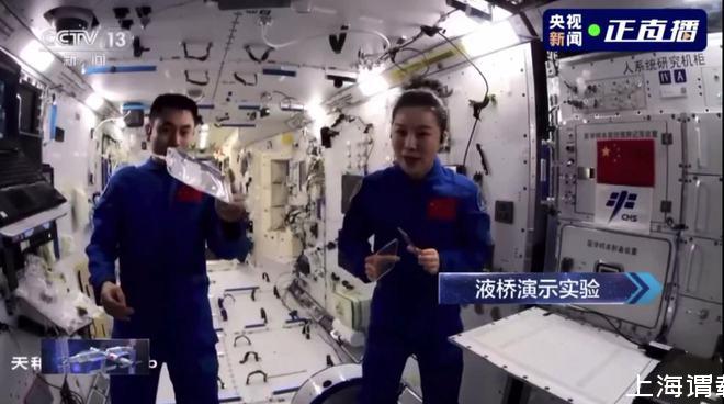 天宮課堂航天員液橋演示實驗展示表面張力的神奇作用
