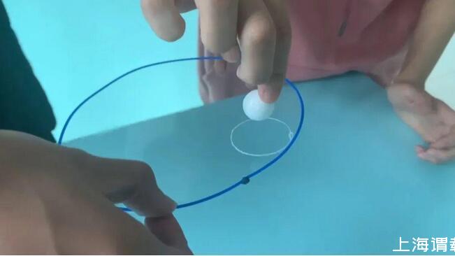 三、用手指將棉線圈中的薄膜扎破,會發現,棉線圈外的薄膜依舊完好無損。