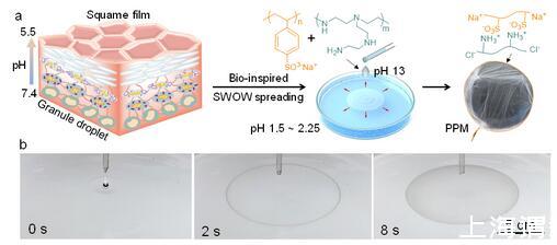 圖1受皮膚分化過程啟發的水-水鋪展與聚電解質膜制備機制