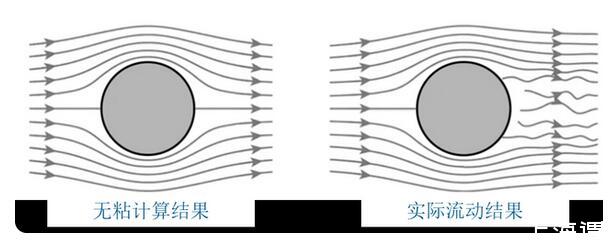 歐拉提出歐拉方程后不久,人們就認(rèn)識(shí)到方程中缺乏粘性項(xiàng),這會(huì)導(dǎo)致歐拉方程的計(jì)算結(jié)果和實(shí)際產(chǎn)生偏差,比如大家熟知的達(dá)朗貝爾佯謬。下圖顯示了理想流體和實(shí)際流體下圓柱繞流的對(duì)比,可以看出,無(wú)粘流動(dòng)的結(jié)果和實(shí)際存在很大的差異。因此,如何在流動(dòng)方程中添加粘性項(xiàng)成為了跨越百年的流體力學(xué)難題。
