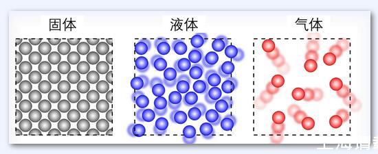 下圖對(duì)比了固體、液體和氣體的分子排列示意圖,可以看出來(lái),固體分子排列緊密且有序,分子之間被分子力牢牢控制而難以發(fā)生隨意的運(yùn)動(dòng)。液體分子則不會(huì)保持固定的形狀,但它們?nèi)匀恢旅芘帕校拖裼螛?lè)場(chǎng)里的海洋球,因此,液體的分子之間仍具有一定的分子力,而這也是液體粘性的主要來(lái)源。