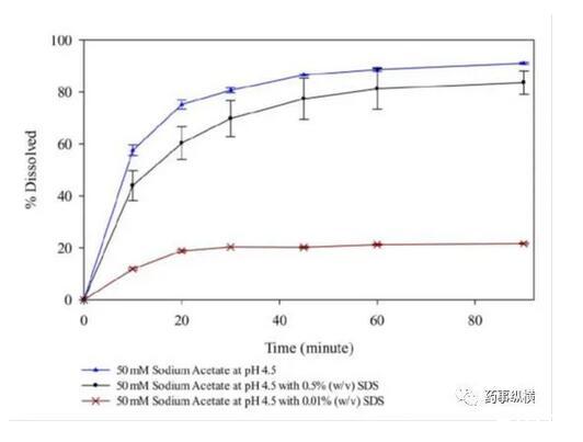 含不同濃度SDS的pH4.5介質(zhì)溶出曲線