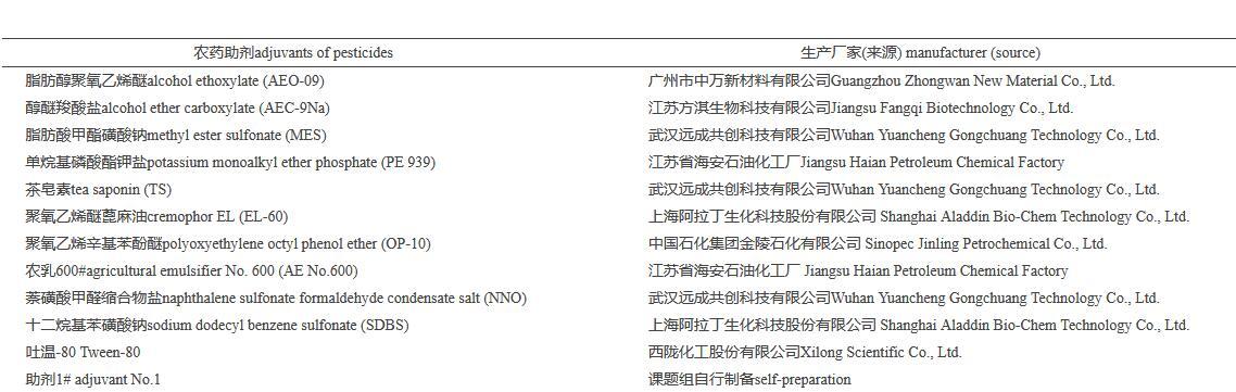 目前,助劑廣泛應用于日用化學工業、食品、環境、衛生、農業和新材料等各個領域,被人們形象地譽為“工業味精”[31-32]。助劑的應用大大地提高了農藥施用率,減少環境污染;然而,由于國內各農藥制劑和助劑生產企業生產技術及工藝存在差異,致使市場上的助劑和農藥制劑的品質不一,不同種類甚至同種助劑的性質和施用效果也不同,大多數農藥制劑在推薦劑量下其藥液并不能很好的潤濕靶標植物[20],因此,合理選擇和安全使用助劑尤為重要。