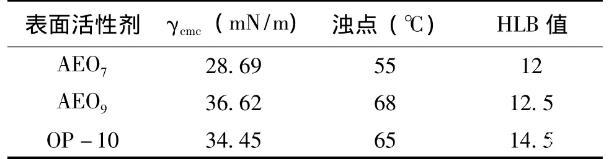 表1三種活性劑的基本性能參數