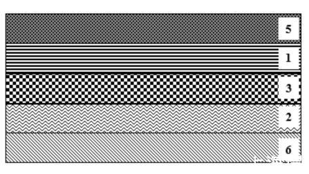 將本實(shí)施例的BOPP薄膜用于制備熱復(fù)合基材,通過熱復(fù)合功能層與共聚丙烯材料或/和聚乙烯材料復(fù)合,具體地,本實(shí)施例是與石頭紙蜂窩板5熱復(fù)合,復(fù)合后的結(jié)構(gòu)請參閱圖3,復(fù)合完成后,測試復(fù)合效果。復(fù)合方法包括以下步驟:首先在BOPP薄膜的可印刷表層上直接進(jìn)行耐溫油墨印刷,其中最后一道為耐溫保護(hù)光油,形成油墨層6,然后輕度熱壓使薄膜與表面達(dá)到一定溫度的石頭紙蜂窩板直接熱壓復(fù)合,熱復(fù)合工藝條件如下:溫度為130℃,封合時(shí)間為2s,熱壓壓力為8kg/cm2